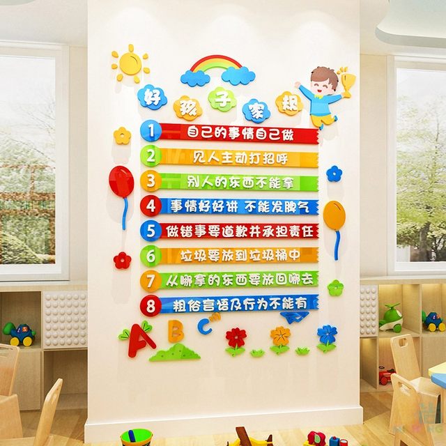 Baby Early Learning Family Rules and Regulations stickers children’s room wall decoration remedial classes to students self-discipline wall sticker slogan