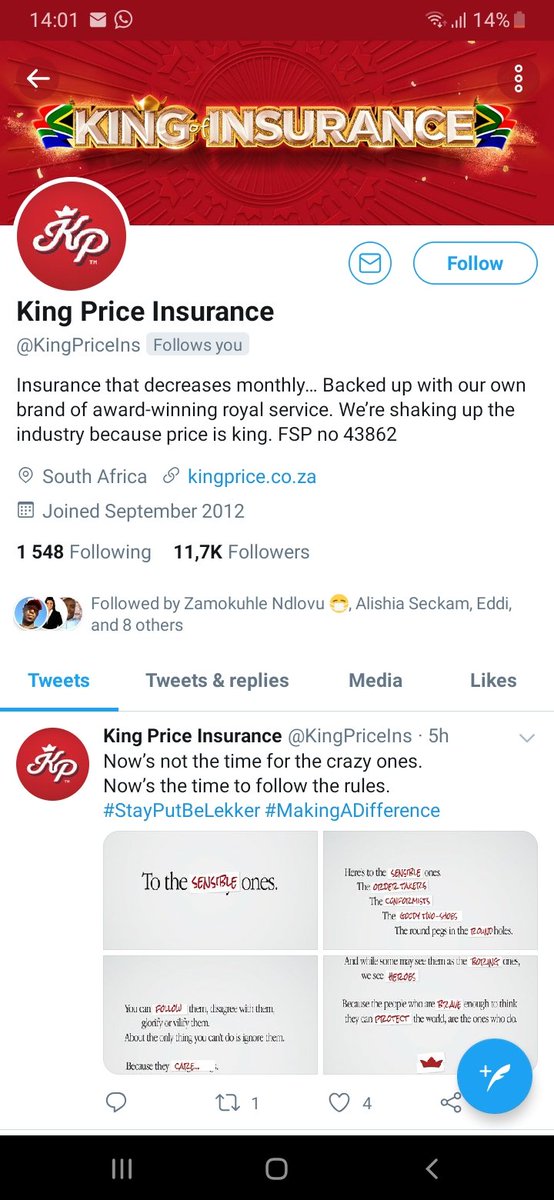 Natasha on Twitter: “King Price’s slogan is something about premiums reducing. All that happened was ours increased by R100 this year despite things depreciating in value… https://t.co/knoLMikoz5”