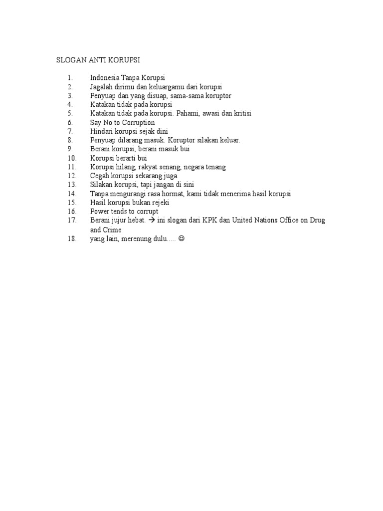 Slogan Anti Korupsi