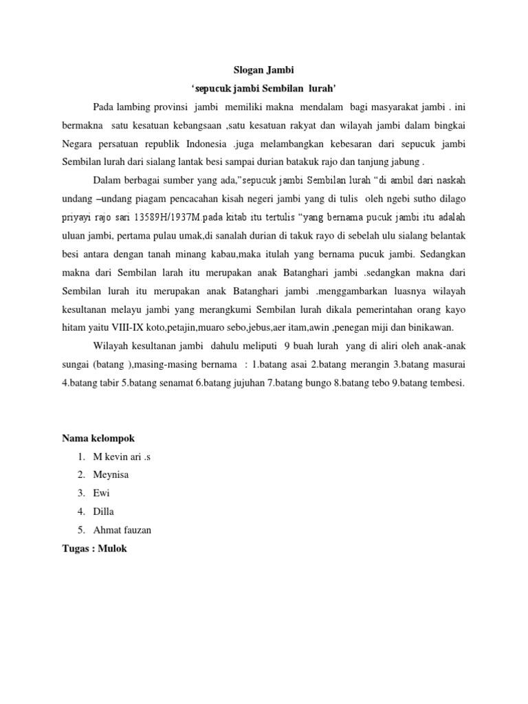 Sepucuk Jambi Sembilan Lurah: Makna Slogan Provinsi Jambi " SEPUCUK JAMBI SEMBILAN LURAH"