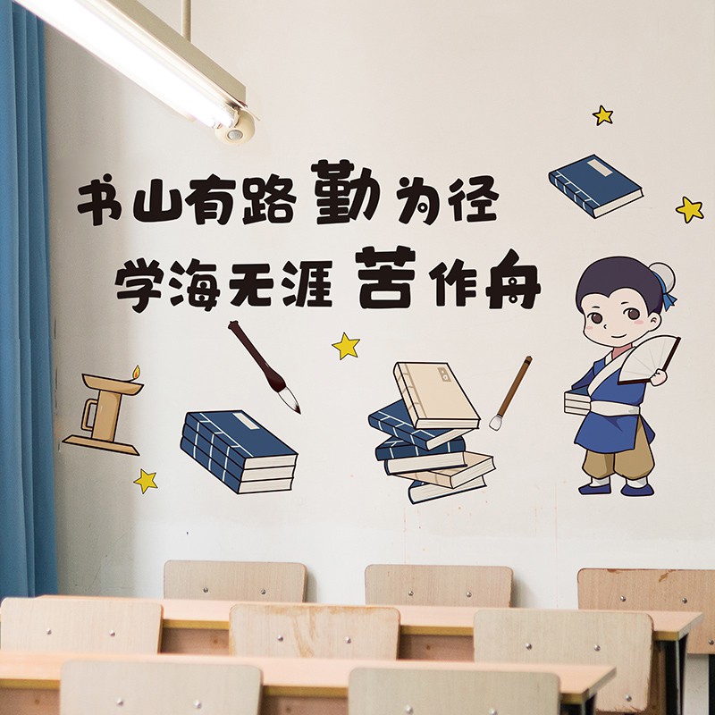 Inspirational wall sticker stiker kelas sekolah budaya dekorasi slogan buku gunung memiliki jalan qinwei trail dinding | Shopee Indonesia