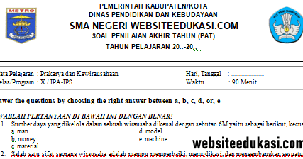 SOAL UAS PRAKARYA DAN KEWIRAUSAHAAN KELAS XII SMA KURTILAS BAB …