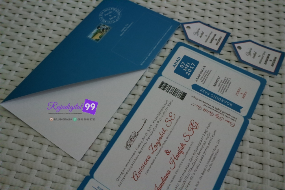 Undangan pernikahan boarding pass Poin Undangan adalah jasa pembuat kartu undangan pernikahan, khitanan harga terjangkau beragam model hard cover, soft cover, kardus nasi, box roti, box sepatu, paper bag di Semarang PoinUndangan