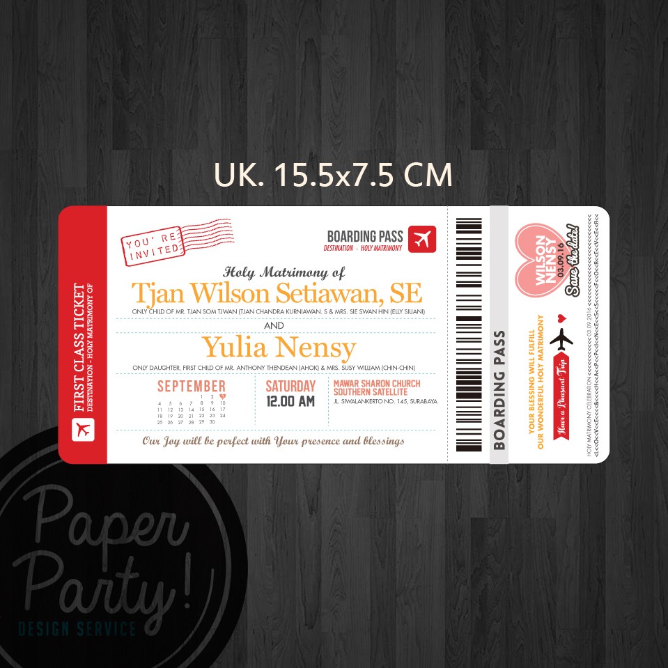 Undangan boarding pass / undangan custom / undangan unik | Shopee Indonesia