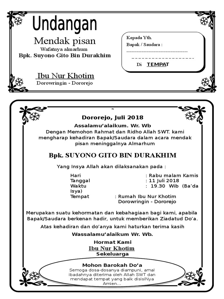 DOC) Contoh Surat Undangan Tahlil 40, 100, 1000 hari (haul) | Dhenmas Eko Mqn - Academia.edu