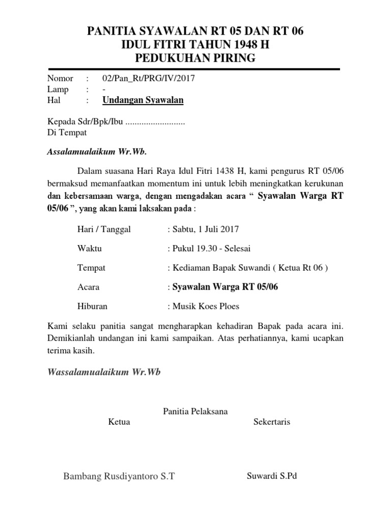 Contoh Surat Undangan Halal Bihalal Idul Fitri | Folder Contoh Surat