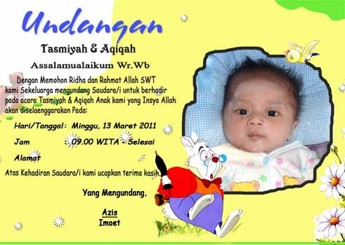 Contoh undangan Walimatul Aqiqah, Tasmiyah, Selapanan atau Malang Areh - antapedia.com