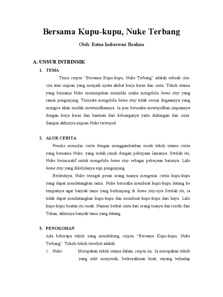Unsur Instrinsik Dan Ekstrinsik Cerpen Ada Kupu