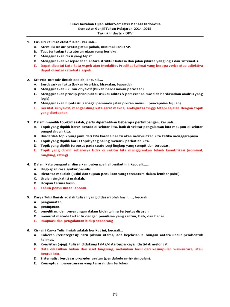 Kunci Jawaban UAS BI 2014