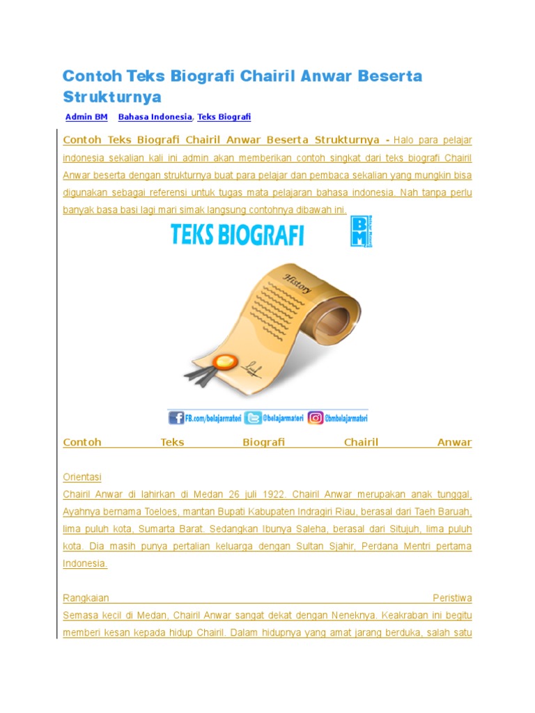 Contoh Teks Biografi Chairil Anwar dan Strukturnya - PELAJARAN BAHASA INDONESIA DI JARI KAMU