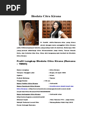 Profil Lengkap Citra Kirana bintang TBNH - Ketemulagi