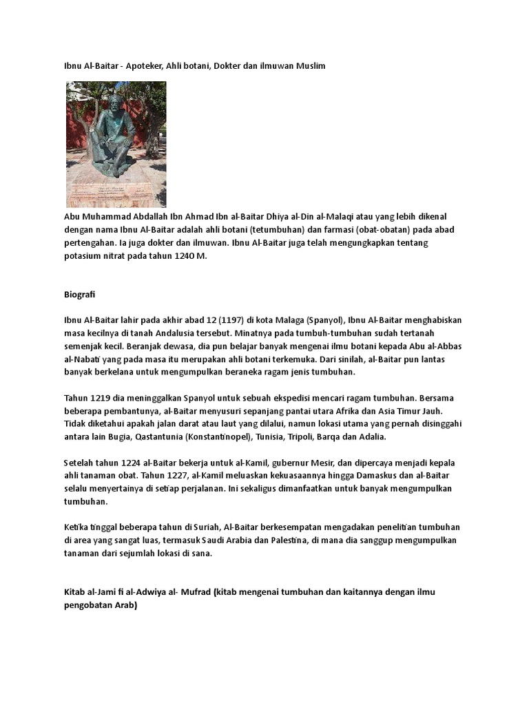 Biografi Ibnu Al-Baitar (Ahli Botani Penemu Hindiba) | Belajar Islam