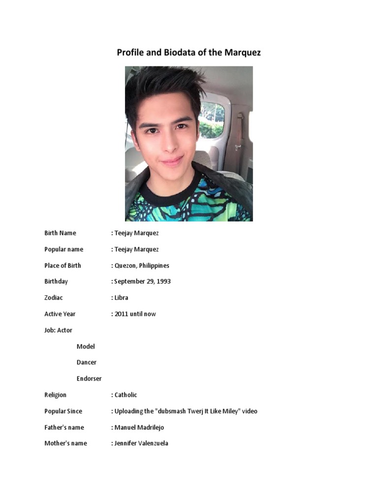 Biografi Teejay Marquez Dalam Bahasa Inggris