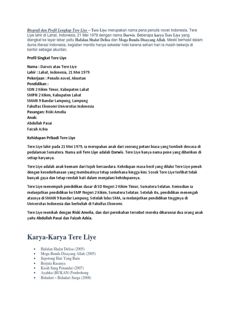 DOC) Biografi Tere Liye | Gufron Fachri Pratista Yogamahi - Academia.edu