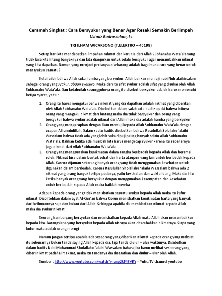 DOC) Contoh Ceramah Tentang Bersyukur Kepada Allah SWT | Buddi Utomo - Academia.edu