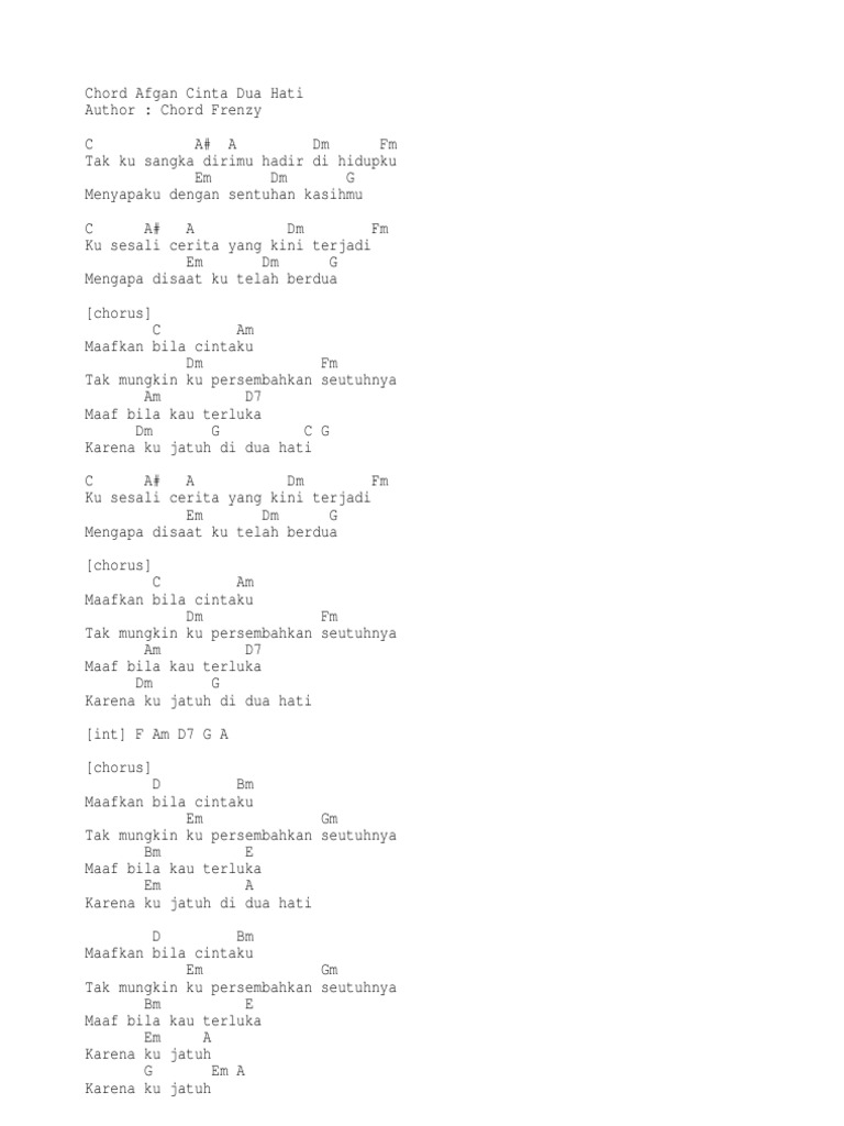CINTA 2 HATI" LYRICS by AFGAN: tak ku sangka dirimu…