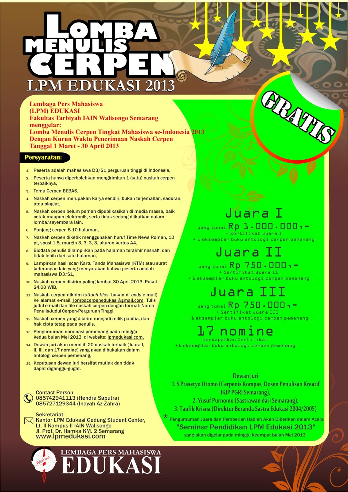 kali kosong: Lomba Menulis Cerpen LPM Edukasi 2013_Gratis Biaya Pendaftaran