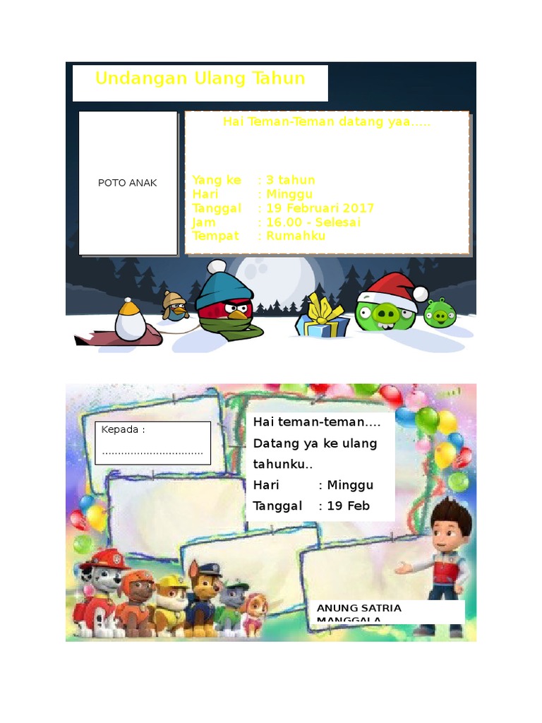Contoh Undangan Ulang Tahun Anak Tema Angry Birt Bisa Di Edit